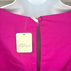 FREE PEOPLE Cotton Hope Mini Dress in Fuchsia Pink Fantastic Size S. Puffed 3/4-Length Sleeves, Elasticized Cuffs, Ruched Front. Keyhole Back With Button Loop Closure. 100% Cotton. Machine Wash. New with tags.