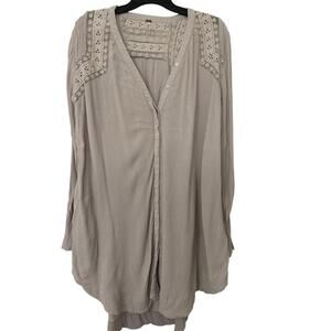 FREE PEOPLE Courtney Victorian Shirt Dress Eyelet Lace Boho Size Small