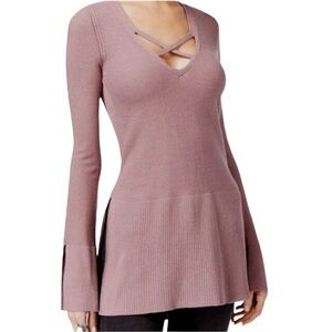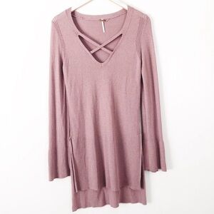 FREE PEOPLE Crisscross Mauve Dusty Pink Sweater with Slits XS