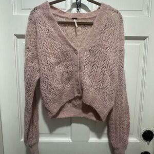 FREE PEOPLE Crochet Amelia ALPACA bland cardigan in Mauve Moon Oversized Size M