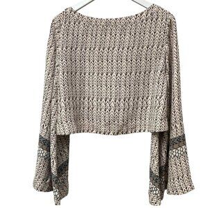 FREE PEOPLE Crop Blouse Size Small Boho Print Cream Stars Aligned Flowy Sleeves