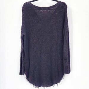 FREE PEOPLE Cross My Heart Cable Knit V-Neck Raw Hem Pullover Sweater