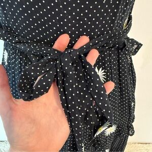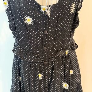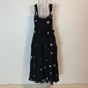 FREE PEOPLE DAISY CHAIN EMBROIDERY FLORAL A-LINE MIDI DRESS BLACK SZ XS BUTTONS