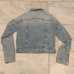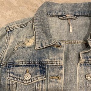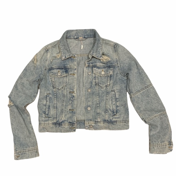 FREE PEOPLE DISTRESSED DENIM CROPPED JACKET SIZE XS. Pre-loved. Overall great condition. Flaws noted in photos.