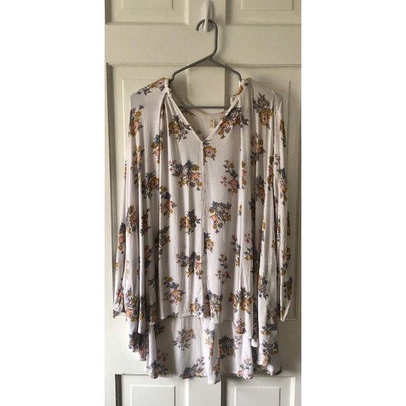 FREE PEOPLE TREE SWING TUNIC DRESS. CONDITION: GENTLY USED/SIGNS OF WEAR. MEASUREMENTS [FLAT LAY]: 21" CHEST, 27" WAIST, 34" HIP, 29" LENGTH. FABRIC: 100% RAYON. SIZE: S.