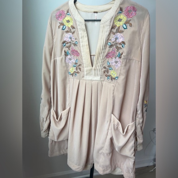 Embroidered, velvet Free People dress with pockets. The detail is absolutely stunning. Fits above the knee.