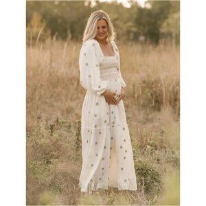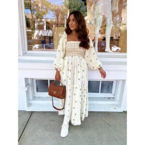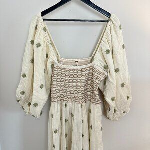 FREE PEOPLE Dahlia Embroidered Maxi Dress in Pastry Combo Size X-Large