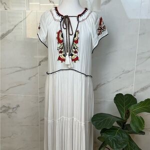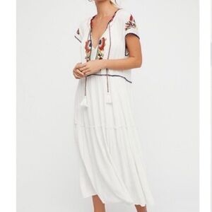 FREE PEOPLE Daisy Fields Boho Cream Gauze Embroidered Maxi Dress, Size XS
