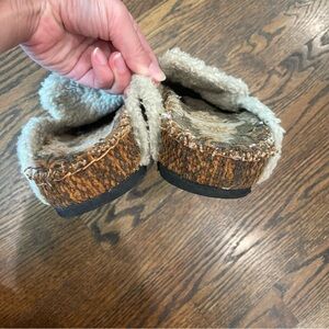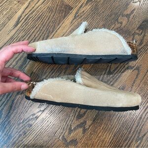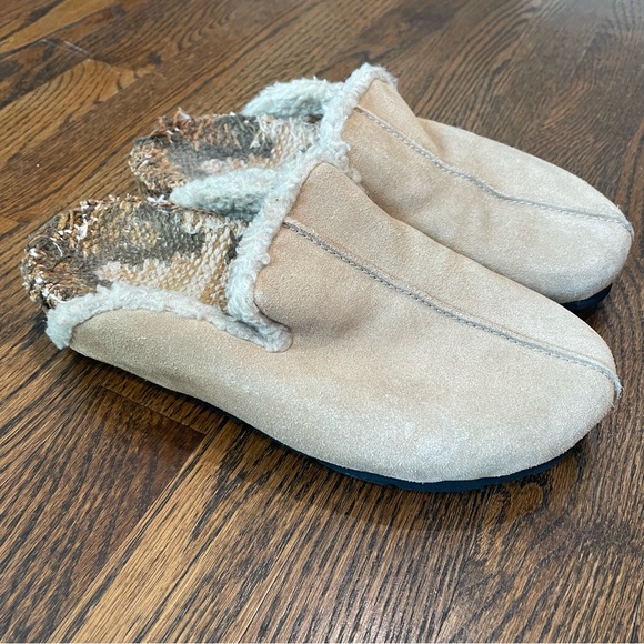 These Free People clogs are in good used condition. Tan suede. Textile insole with faux fur lining. A couple spots show minor wear (pictured). Size 37.