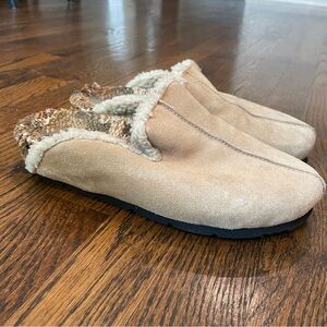 FREE PEOPLE Damon Clogs Tan Suede Faux Fur Textile Insoles Slip Ons
