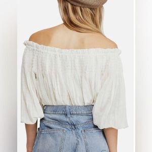 FREE PEOPLE Dancing Till Dawn Off-the-Shoulder Cropped Top, Medium