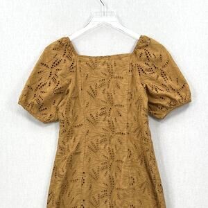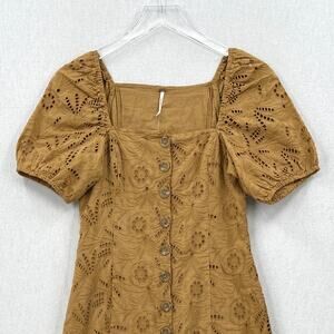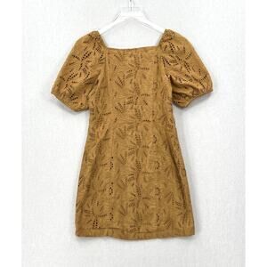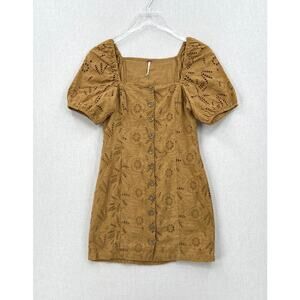 FREE PEOPLE Daniella Mini Dress Women 0 Taupe Embroidered Eyelet Puff Sleeve New
