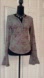 FREE PEOPLE ~ Dark Gray Long Flutter Sleeve Top w/Hints of Burgundy Print size M