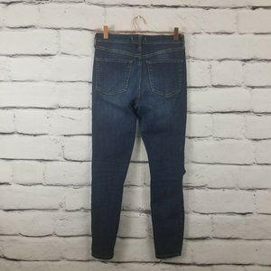 FREE PEOPLE Womens Size 29 Denim Jeans Skinny Busted Knees Hi Waist Dark (6). Excellent preowned condition. The only flaw is there is minor puckering near the zipper, please see photos. Smoke and Pet Free Home. Measurements are in the photo. Bin 6