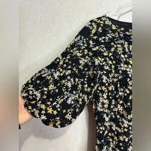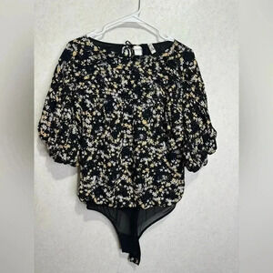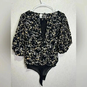 FREE PEOPLE Dessa Bodysuit in Black Ditsy Floral Combo Puff Sleeve Size XS