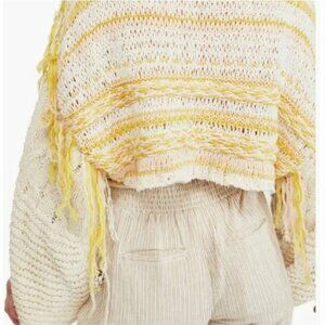 FREE PEOPLE Distressed Drive Through Crema Bell Sleeve Sweater M/L Crop Boho