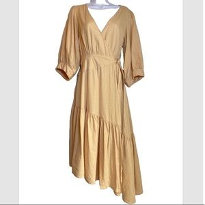 FREE PEOPLE Don't Mind If I Do Wrap Midi Dress Asymmetrical Linen Blend Boho Sm