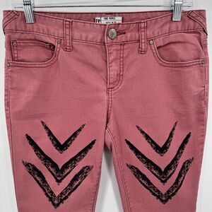 FREE PEOPLE Dotted Ikat Arrow Faded Red Chevron Print Ankle Jeans Size 29