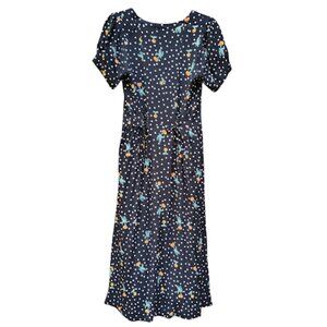 FREE PEOPLE | Dream Girl Midi Puff Sleeve Polka Dot Print Corset Lace-Up Dress 8