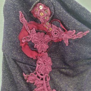 FREE PEOPLE Dress Purple Gold Metallic Strapless Floral Appliqué Ruffle Hem Sparkle