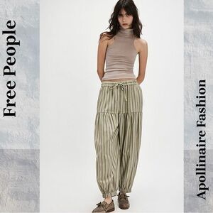FREE PEOPLE ELLIE STRIPPED PULL ON PANTS MINT COMBO MEDIUM NEW