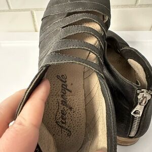 FREE PEOPLE EMMA black woman boho cottagecore pointed toe zip closure cut out bootie