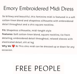 FREE PEOPLE EMORY DAISY EMBROIDERY MILKMAID COTTON LINEN RELAXED BOHO MIDI DRESS