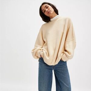 Ribbed mock neck pullover sweater featured in a tunic length.