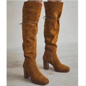 FREE PEOPLE Echo Platform Over the Knee OTK BOOTS Size 8.5 Tan Suede NEW $298