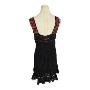 FREE PEOPLE Embroidered Black Sleeveless Dress Lace Flower Summer Sun Size S XS