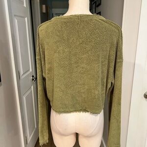 FREE PEOPLE Emma’s moss green oversized short henley with front ties