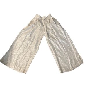 FREE PEOPLE Extra Wide Legs Glossy Viscose Trousers in Off-White Size 0