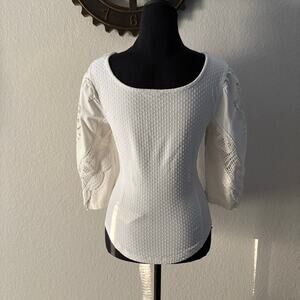 FREE PEOPLE Eyelets Embroidered Peasant Blouse Bone SzS Boho Cottagecore Country