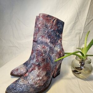 FREE PEOPLE FLORAL MYSTIC CHARMS HEEL WEDGES BOOTS BROCADE SIZE 38 EUC