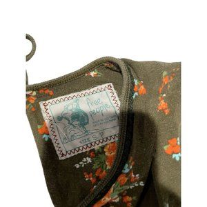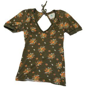 FREE PEOPLE FLORAL PRINT OPEN BACK SHORT SLEEVE GREEN v neck TOP SZ SMALL | T1
