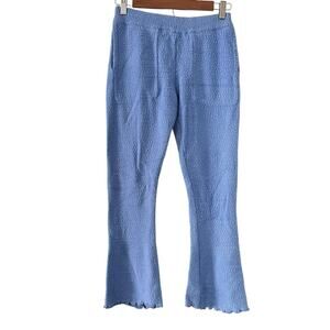FREE PEOPLE FP BEACH Picnic Casual Pants •XS• Blue cropped Lettuce Hem Pull On