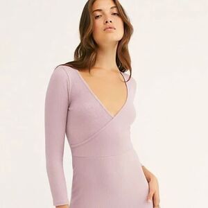 FREE PEOPLE FP BEACH Sz XS RIBBED ALL ABOUT THE SELFIE MINI DRESS LILAC