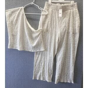 FREE PEOPLE FP BEACH Womens Size L Gia SET TOP WIDE LEG PANT NWT Ivory Revolve