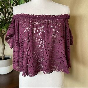 FREE PEOPLE | FP Beach Eyelet Off the Shoulder Top Size XS Purple Crop Shirt