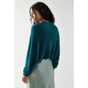 FREE PEOPLE FP ONE WYATT CARDI SOFT FUZZY BUTTON FRONT CARDIGAN TEAL Size XS