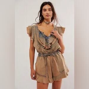 FREE PEOPLE FP One Naya Chambray Romper - Peach