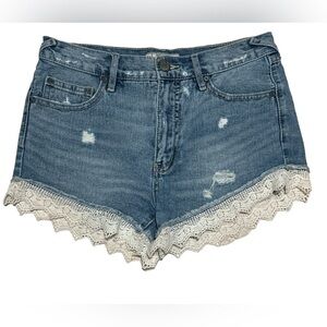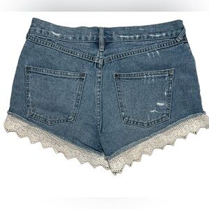 FREE PEOPLE FP Women’s Distressed Denim Lace Hem High Rise Jean Shorts sz W25