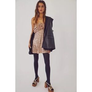 FREE PEOPLE FRIDA BRONZE SEQUIN RUFFLE BUST MINI STRAPLESS PARTY COCKTAIL DRESS