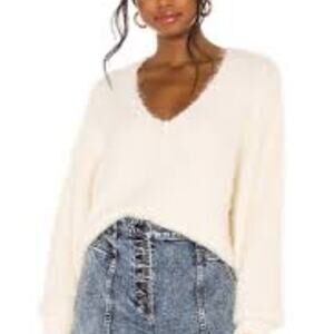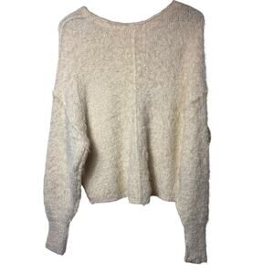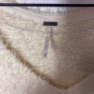 FREE PEOPLE FUZZY WHITE CREAM FUZZY V-NECK SWEATER SIZE XS 100% NYLON