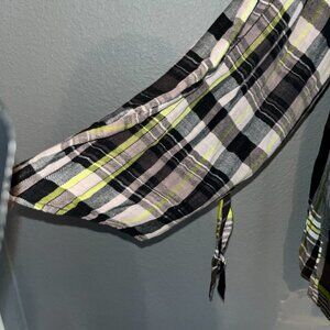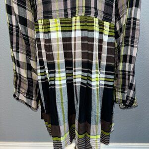 FREE PEOPLE Falling Stars Oversized Babydoll Plaid Mini Dress w/Tie Wrists - XS