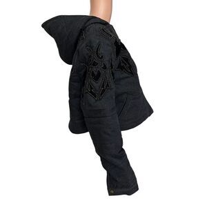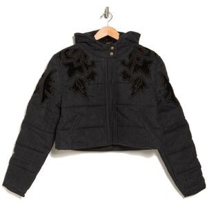 FREE PEOPLE Fleur De Lis Denim Puffer Jacket In Black size M NWT