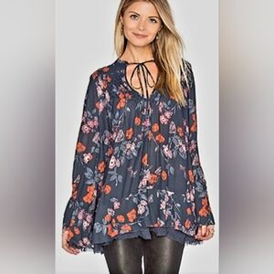 FREE PEOPLE Floral Print Women's Top - Dark Grey and Orange Size Large