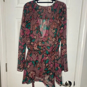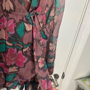FREE PEOPLE Floral Raw Hem Wrap Top with Ruched Back Detail Size Small