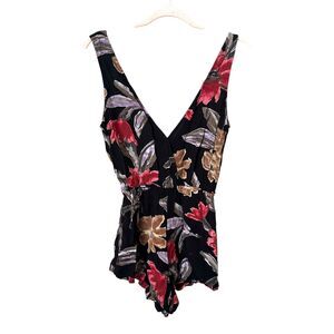 FREE PEOPLE Floral V-Neck Boho Romper Black Small
