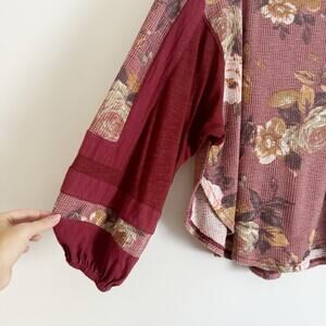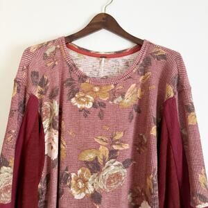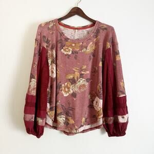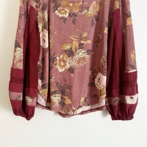 FREE PEOPLE Flower Patch Waffle Long Sleeve Burgundy Small S OB877354